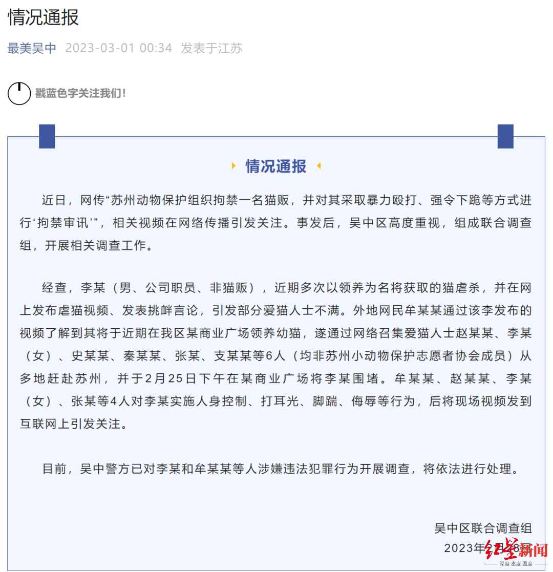 對他大打出手的,則是一羣自發聚集的愛貓人士,和蘇州本地的動保組織無關。