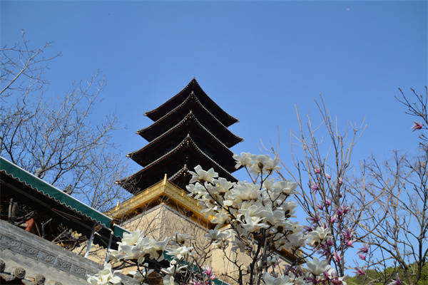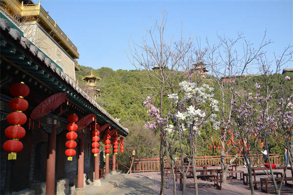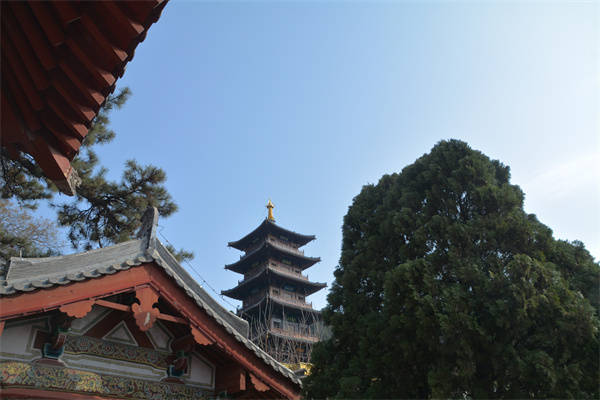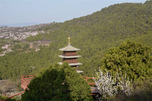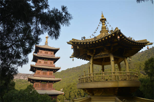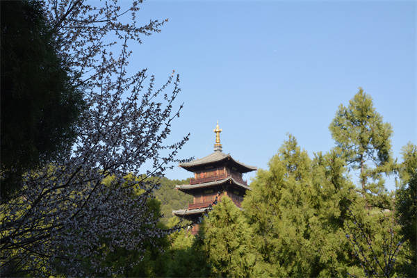 沿着林間石階繼續向上,親身感受歷史的厚重,宛如從喧鬧中瞬間進入一個極樂清淨的世界,行在蜿蜒曲向的石階時,抬眼望去殿宇時隱時現,至於寺中,清新的空氣撲面而來,令人神爽,大有身臨其境在晨鐘暮鼓的梵音之中,迴盪于山谷。