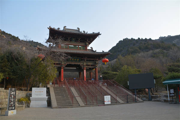 從風峪溝走入,兩山左右聳峙而立,中有河灘延伸而去,沿着河灘前行約1公里,就能直到太山腳下,一座氣勢恢宏的雙排柱重檐歇山頂牌樓矗立於此,坊額書“古剎龍泉”,通過此牌樓便可以進入太山景區。