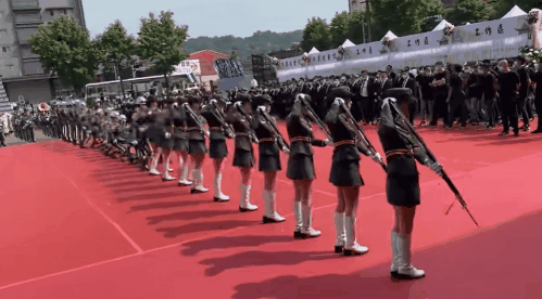 這些耍花槍的台灣女高中生其實都是學校的儀隊成員,平時都是經過長時間刻苦訓練的,選拔的難度相當於咱們的國旗班,而且這些高中學生儀隊的存在歷史和咱們的建國時間都差不多了。