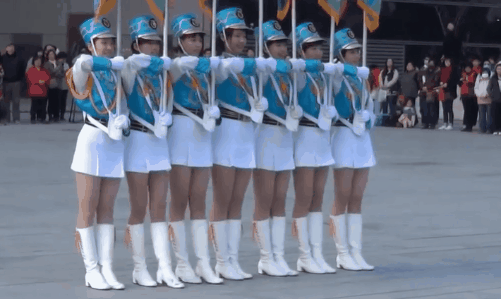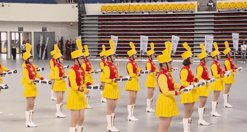 通常而言,操槍表演時是需要有配樂的,一是為了加強觀賞性,二是為了給儀隊打節奏,讓動作更加整齊配合,因此這些女子高中儀隊一般都不是單獨表演的,還會有樂隊、旗隊,三者統稱為樂儀旗隊。