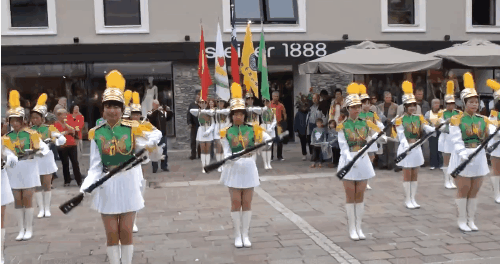 後來女子高中儀隊的服裝就漸漸往華麗風格發展,還效仿過美國行進樂隊禮服,往帽子上插羽毛、墊肩上掛流蘇,以此展現學生的活力。