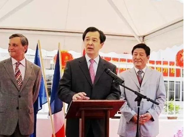 • 孔泉、張國斌和來賓共同剪綵(左起:阿內特、丹達爾、馬喬尼、孔泉、皮埃爾·維爾吉斯、張國斌)