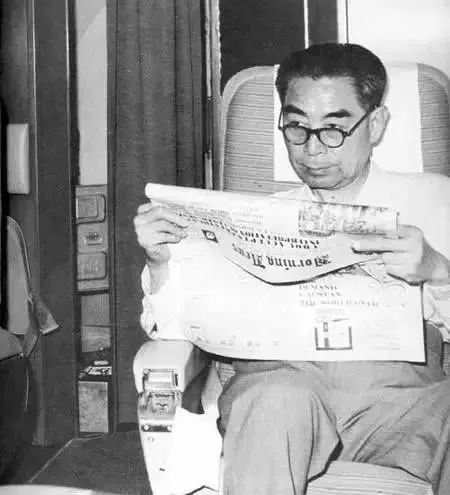 • 1964年3月8日,周恩來出訪回國途中,在飛機上閲讀。