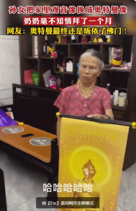 這幾天有這麼一段視頻在網上流傳,大意是,孫女將奶奶拜的觀音像換成了奧特曼,奶奶隔了一個月發現後很生氣,擱這兒教訓母女倆,母女倆則擱那兒笑,很簡單的一個視頻。