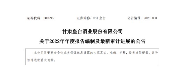 *ST皇台稱,截至本公告披露日,公司正積極推進 2022 年年度報告編制及審計工作。大華會計師事務所(特殊普通合夥)(以下簡稱“大華所”)正有序執行相應審計程序、獲取審計證據並進行審計底稿的編制。