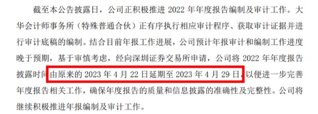 同時,深交所還要求大華所,詳細説明截至目前已開展審計工作的具體內容和進展,公司年報披露延期的具體原因和合理性,管理層是否存在不配合審計工作的情形,是否發現公司財務報告、內部控制存在不規範的情況,是否存在審計範圍受限或其他不當情形。