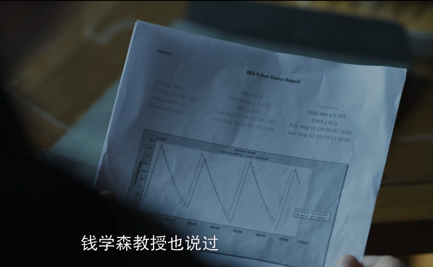 **劉倩:**上圖中楊冬看到的實驗數據是我們設計的。這裏有個小故事,電視劇設定的是2007年,但2006年北京譜儀Ⅱ停止運行了,2007年的時候正在做加速改造,升級後的北京譜儀Ⅲ直到2009年才開始投入對撞實驗。那時候我正好讀博士,所以我也參與了其中的一些改造工作。