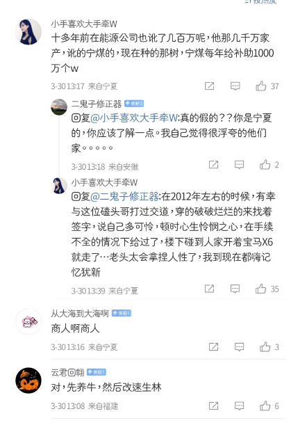 很多媒體上來就把他捧成了“傾家蕩產”、“不求回報”治理沙漠的“當代愚公”,説他放棄千萬家產,幾十年如一日投入治沙工作,卻遭到了當地國企煤礦的不公正對待,呼籲要給他一個公道。