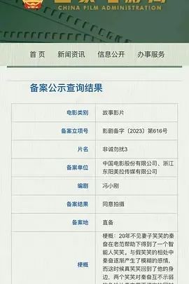 **馮小剛:**我今年接下來肯定是要拍《非誠勿擾3》了,確實有好幾年沒拍電影了,《非誠勿擾3》7月份開始拍,因為葛優、範偉他們都有時間,舒淇要到6月底才能結束她現在正在拍的戲,當然還有李誠儒、姚晨和一些年輕的演員,比如2010年《非誠勿擾2》裏的關曉彤,當時她是一個小孩,在裏面唸詩,現在她已經長成一個大姑娘了,反正我們把這些演員的時間集中好,在7月份拍。