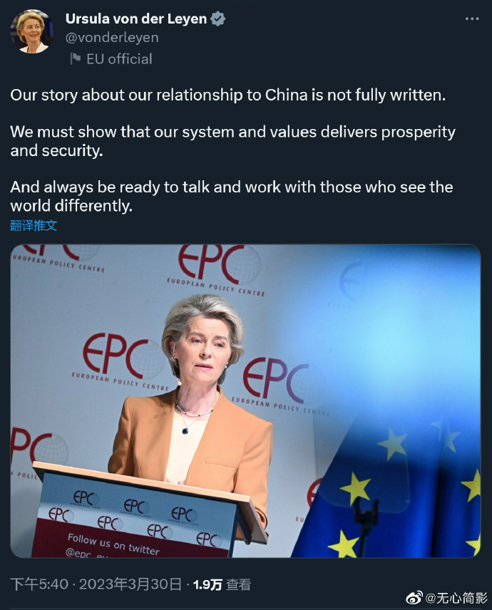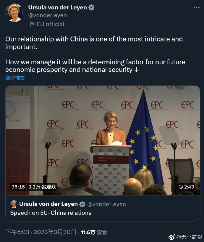 歐盟委員會主席馮德萊恩,今天在活動中做了關於中歐關係的演講_風聞