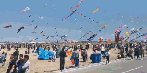 一年一度濰坊風箏會的盛況。在濰坊,什麼都能被放上天