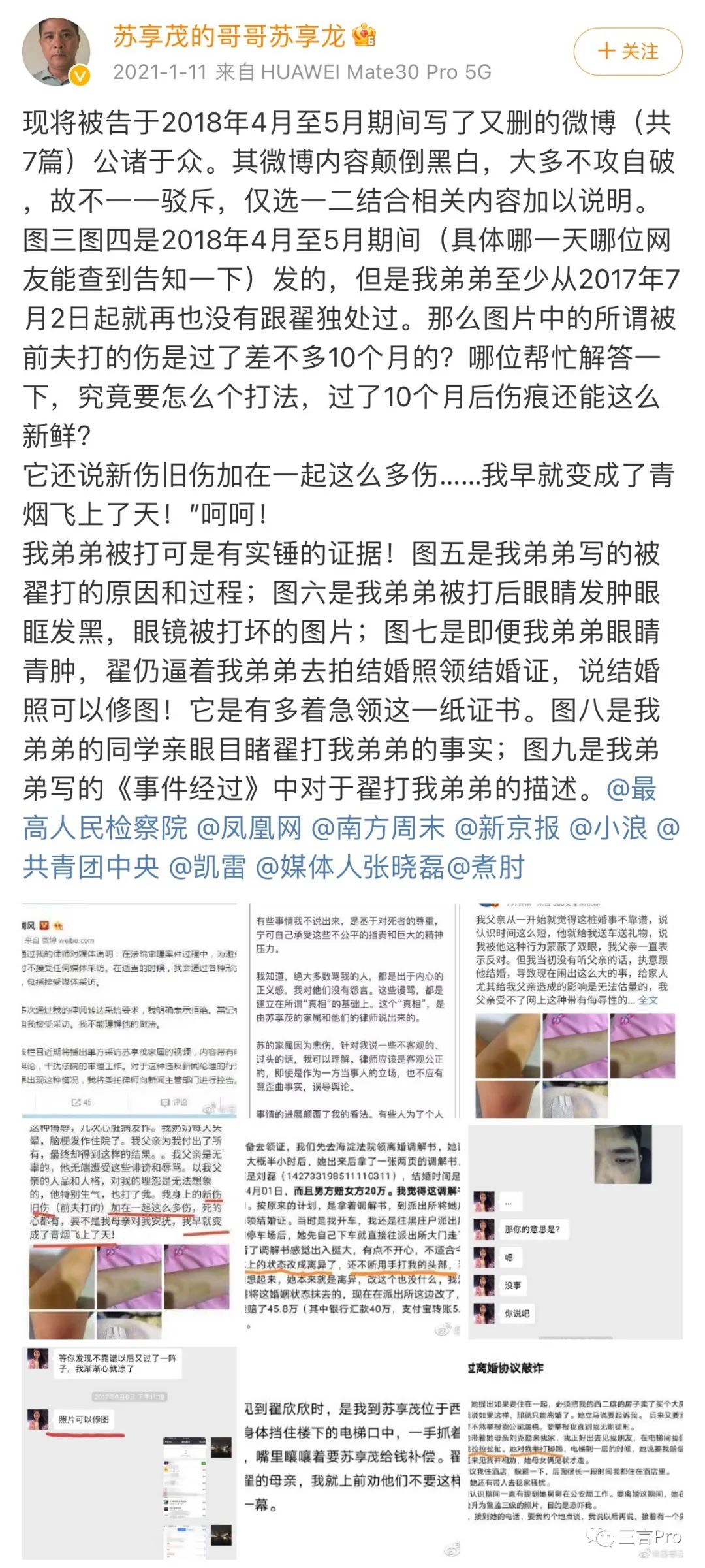 筆者粗略統計,蘇享龍自17年底至今,發佈的微博內容90%都在為弟弟蘇享茂發聲,內容囊括開庭審理、控訴雙方糾紛細節等。