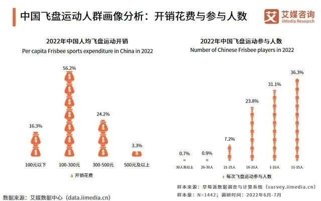 同時,艾媒諮詢公佈的《2022-2023年中國飛盤運動市場運行監測及典型細分領域研究報告》也證明了這一點——報告顯示,2022年飛盤運動消費者在這項運動上的開銷在100-300元之間的佔比最大,為56.2%,開銷不足100元的也有16.7%。大部分人玩飛盤花的錢,還不及運動後的一頓吃喝。