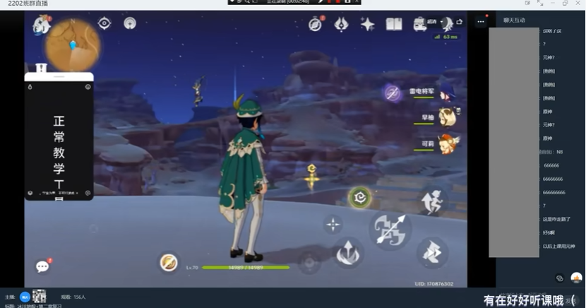 有當堂課的同學解釋到,老師本身不是遊戲玩家,用《原神》講課是為了滿足同學們的好奇心。誰想無心之舉將節目效果拉滿,講解風蝕地貌時用的角色恰巧是風神巴巴託斯,用雷神跑圖時又有玩家口中的“屑狐狸”八重神子一直申請加入世界。