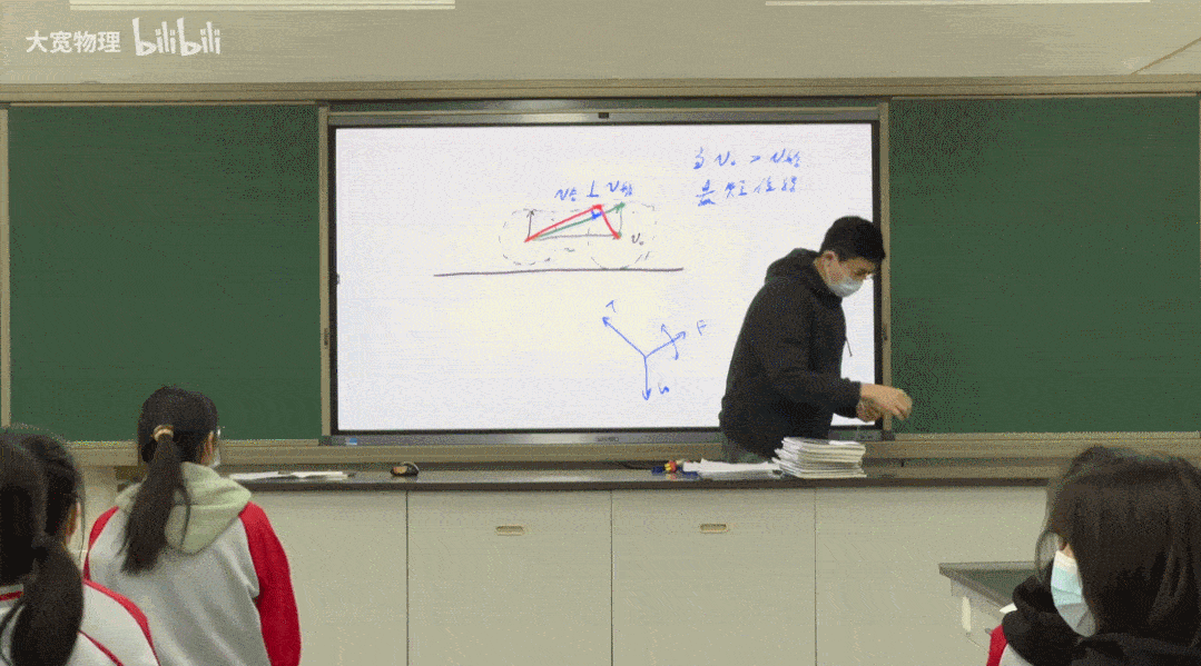 他以自己新手時期的經歷為切入點,“原來(體力條)只有一圈……體力沒了就會死”,如何快速過河就成了問題。此時大寬老師靈光一閃,“誒!這不就是小船過河問題嗎?”於是,在老師的操縱下林克分別演示了“最快速度”“最短距離”兩種情況,水流方向的影響、速度的疊加等問題在這過程中得到一一解答。