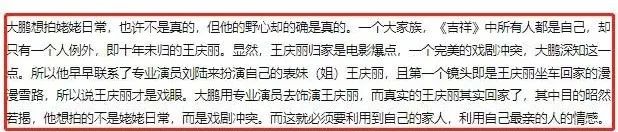 上一次的《吉祥如意》也是,大鵬拍父輩們在姥姥去世後徹底撕破手足和諧的假象,有人覺得他拿自家醜事出來剖解特別有誠意,有人覺得他連至親的人血饅頭都要吃。