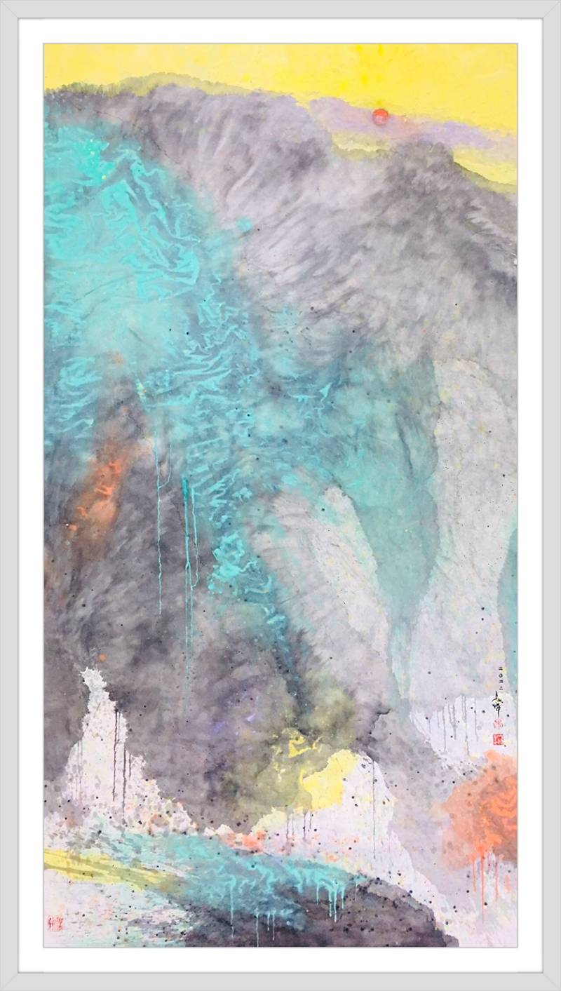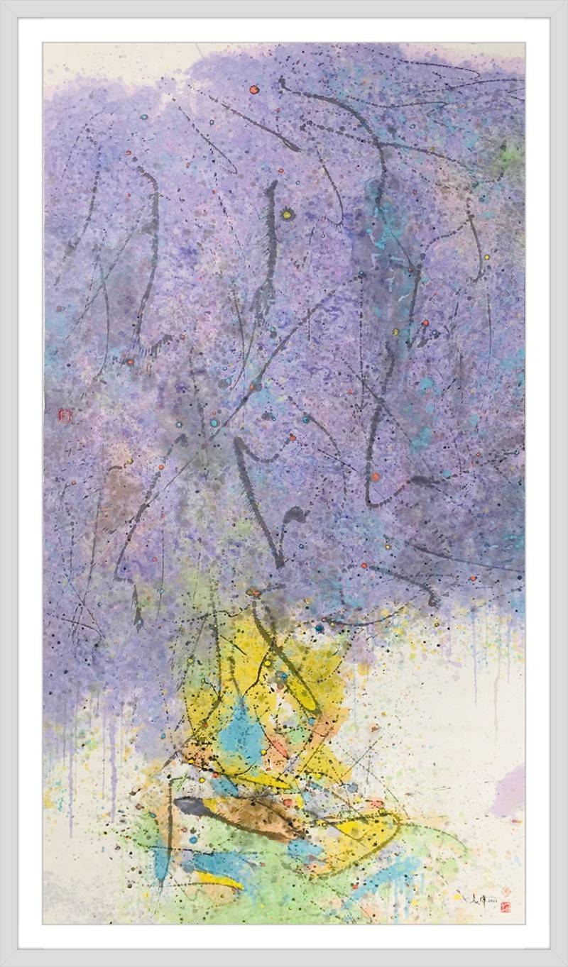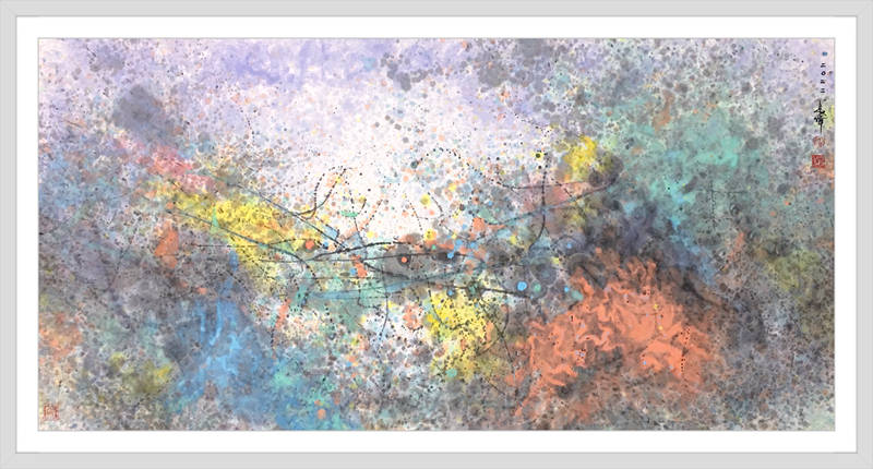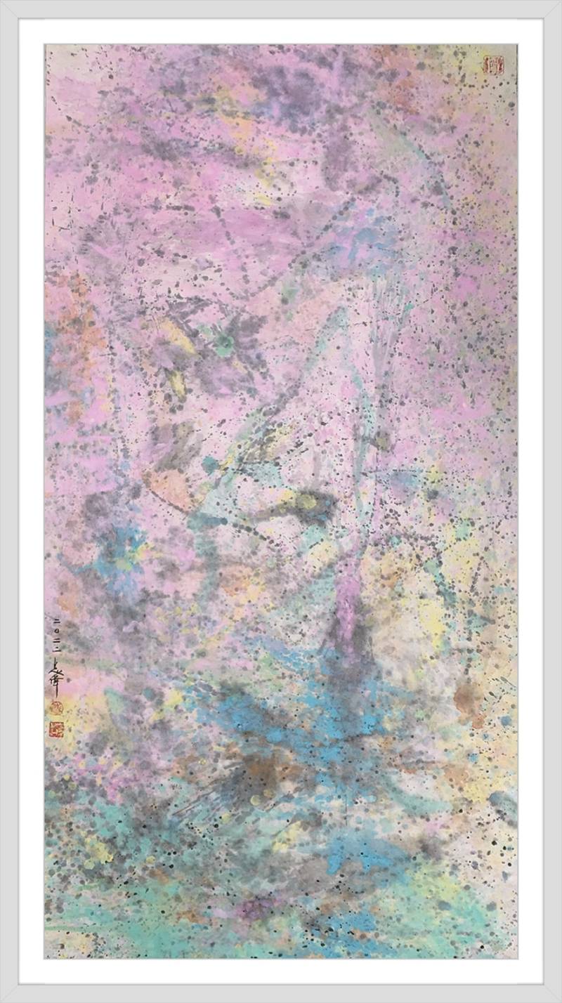 自然的、心緒的、天成的、規劃的,都會通過無痕式的對接,形成揭示萬般真相的畫面情景,以至道可道,非常道,名可名,非常名!純灑彩畫作品,用西方哲學去立意,就是“上帝視角”下的宇宙觀,用中國哲學去表達就是“一生二,二生三,三生萬物”的道家精髓!因此,他的純灑彩作品,帶着融貫中西哲學的思維,生成了驚豔世界的新美學品質,無論是中國人還是外國人,站在這些純灑彩畫作品面前欣賞,然後去感悟,都可以深入作品內涵,享受抽象審美的萬般玄機!