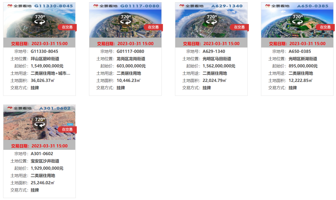 這五塊地裏面光明區、龍崗區的兩塊地為去年流拍地塊