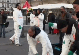 昨天下午,為了反對養老金改革,市政府工作人員在市政廳門口傾倒老鼠屍體。