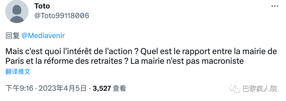 “客觀的,中肯的,一針見血的”派:“但這樣做有什麼意義?市政府和退休金改革有什麼關係嗎?他們又不是馬克龍黨。”👇