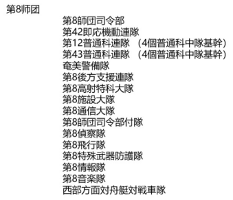 2018年,日本陸上自衞隊為了加強其西南方向(我釣魚島方向)的兵力配置,以提高反應速度為目標,對第8師團進行了改編。