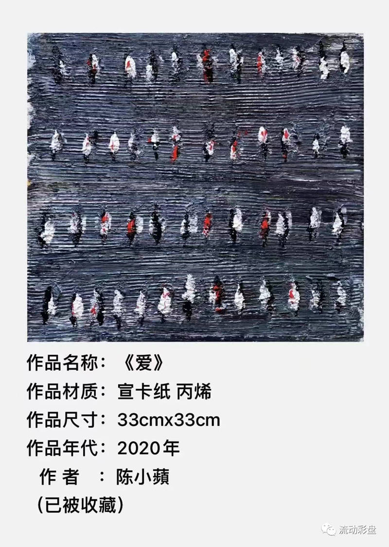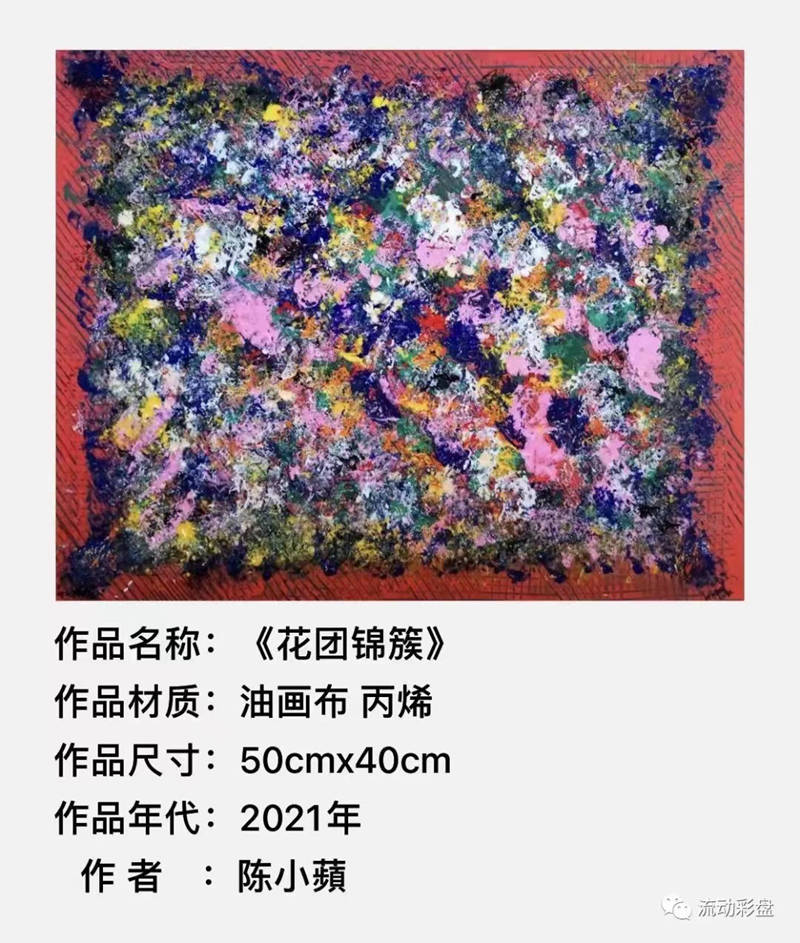 ……品賞陳小蘋的抽象繪畫作品,除了色彩夢幻,想象瑰麗,還堅守着自己那一份不俗不躁的悠然桃花源的初心,潛心修煉,刻苦經營,已然形成了自己獨特的繪畫風格,極具個性。畫面表達既抒發心靈最真實的感悟,又很善於把意識捕捉到的情感傾訴於作品之中,寓意深刻。……