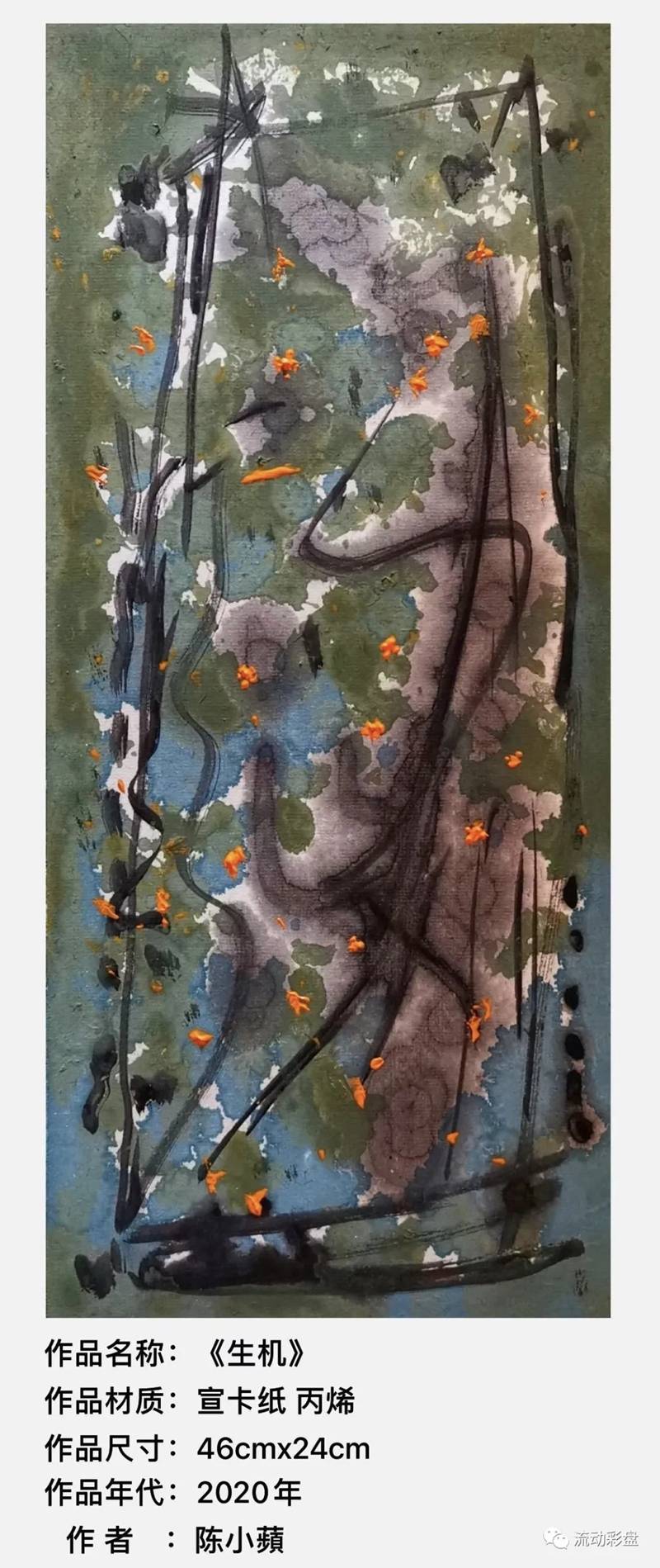 抽象畫就好像把人們指向一個無法説清楚領悟的海洋,但又連接着各個學科領域最前沿最瘋狂的幻想。在通過對大自然的寫生和觀察獲取創作元素,觸發創作靈感,激發着表達慾念。我所創作的每一幅畫雖然各不相同,但能通過繪畫的語言(強化了線條和色彩)來表達我內心最真實的情感……