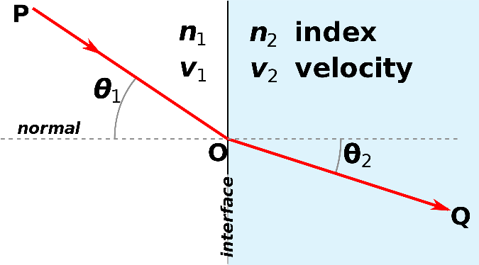 色散是基於折射產生的。折射定律告訴我們,光從一種介質運動到另一種介質時,傳播方向會發生改變,而這個改變的具體值取決於光在兩個介質中的相對折射率。然而,不同顏色的光其實對應着不同波長的電磁波,他們在同種介質中的折射率並不一致。這就意味着當一束由不同波長的光混合成的光從一種介質到達另一種介質,不同波長的光就不再沿着同一方向行進,這便是色散現象。
