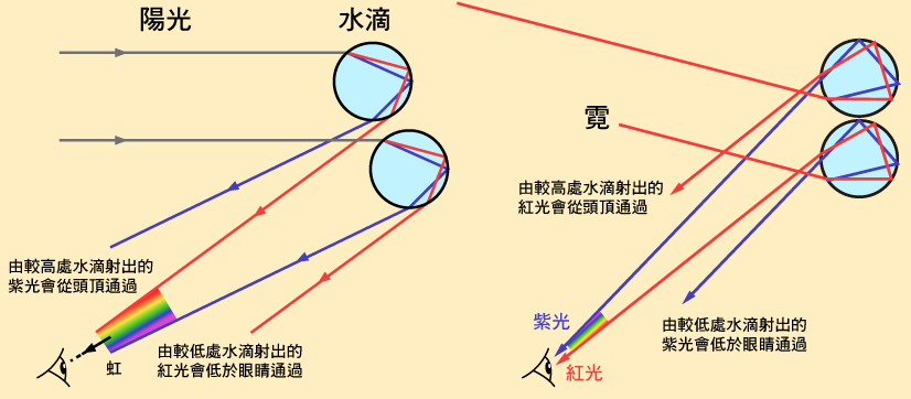 圖3 虹與霓形成原理示意 | 圖片源自[1]