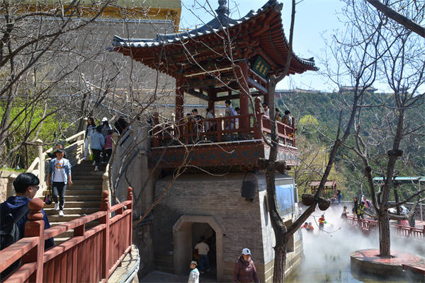 經過風峪河牀,可以看到太山龍泉寺的牌樓,往北過牌樓是龍泉寺,往西便是風峪驛路,向東是晉陽古城,龍泉寺的中軸線與晉陽古城是平行的。古時皇帝要到蒙山避暑,必須從晉陽古城西門出,走風峪,經太山龍泉寺,往西北到達蒙山上的避暑宮。若從山下看,以風峪為中心,南側有龍山,北側有蒙山,中間是太山。太山是避不開的重要去處。
