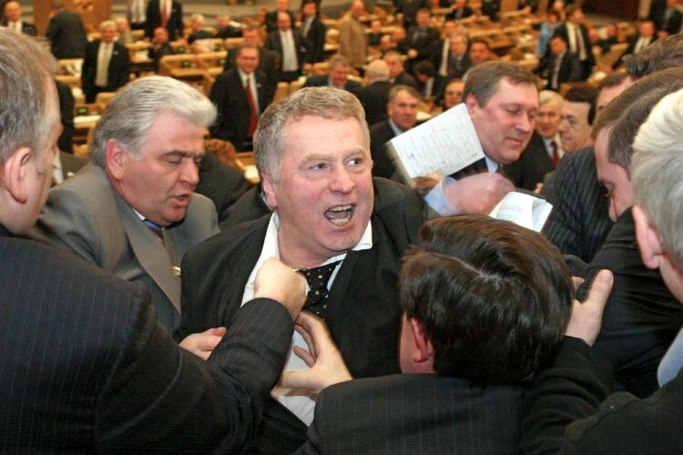 但是,這一議題在俄羅斯杜馬產生了較大分歧,俄羅斯祖國黨主席弗拉基米爾·雷日科夫認為俄羅斯正處在與西方發展關係的關鍵時期,南聯盟此時正因為不順從西方而導致了戰爭,俄羅斯貿然介入西方的戰爭,這會毀滅俄羅斯與西方的“友好關係”。因此,雷日科夫説日裏諾夫斯基的提案就是“一劑毒藥”,“俄羅斯杜馬不應該參與疥瘡事件”。杜馬爆發了激烈的辯論,日裏諾夫斯基責罵雷日科夫是西方的走狗,杜馬主席將日裏諾夫斯基的麥克風關掉,整個自民黨派議員退出杜馬大廳以示抗議。