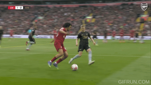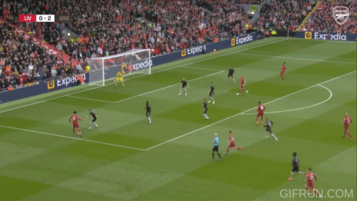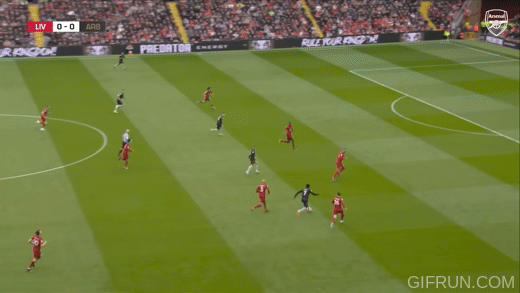轉折點,大概是42分鐘扎卡和阿諾德那兩張黃牌:此前阿森納飄忽靈動,野蜂飛舞,利物浦抓不住;扎卡那張黃牌後,利物浦似乎集體動氣了。然後安菲爾德的血氣湧現。津琴科積極前插出球,固然是好——他今天傳球50次全隊第二高——但他那一側,畢竟有整個球場最懾人的存在:薩拉赫。