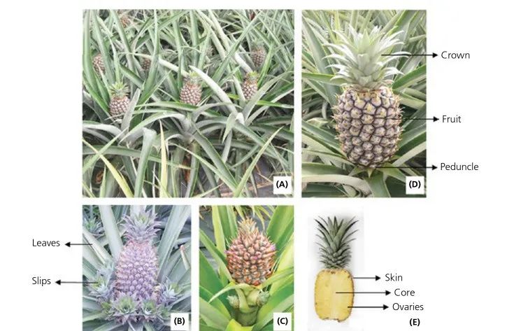 菠蘿的子房(圖E中ovaries所指)(圖片來源:(Online ISBN)9781118967355)