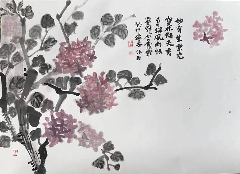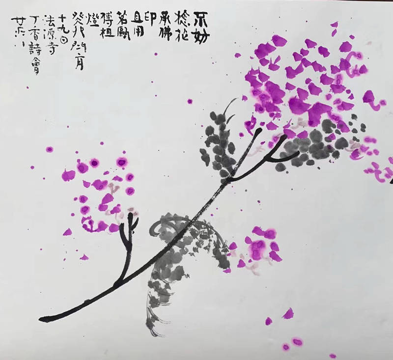 張爽女士寫意丁香,並題詩《法源寺妙有》: