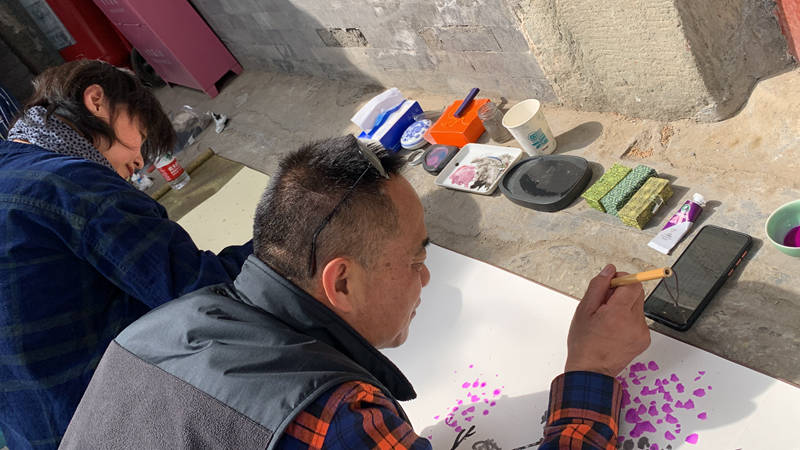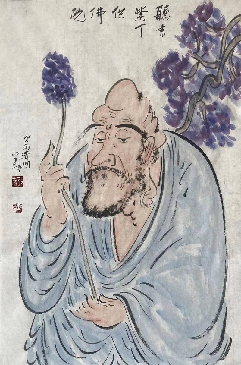 與此同時,遠在甘肅未能回京的詩人、書畫家野雪先生也畫了一幅《聽香紫丁供佛陀》,與北京丁香詩會雅集現場活動遙相呼應。