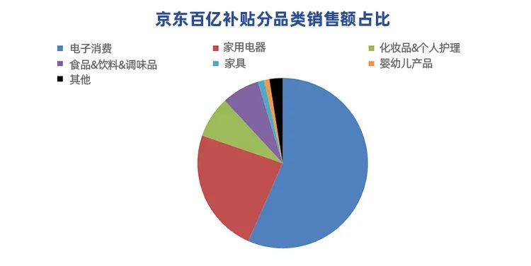 京東的百億補貼渠道品類較為集中**,**消費電子和家用電器貢獻了80%以上的銷售額,這兩個品類是該平台上的領先品類。