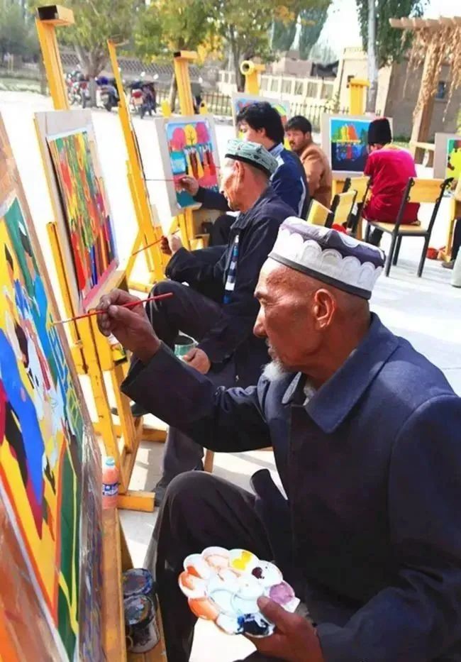 穿越喀什時光,我們在麥蓋提縣走進西域藝術,投入民俗觀賞刀郎畫鄉農民畫展,從視覺上打開對色彩的品味,與古老的刀郎人一起品味藝術。