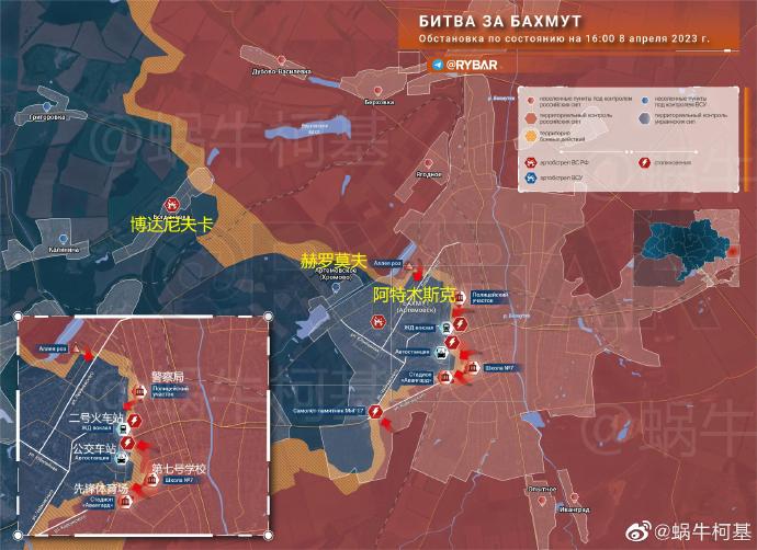 1、8日俄方信源聲稱俄軍向西推進到了阿特木斯克看守所和鐵軌