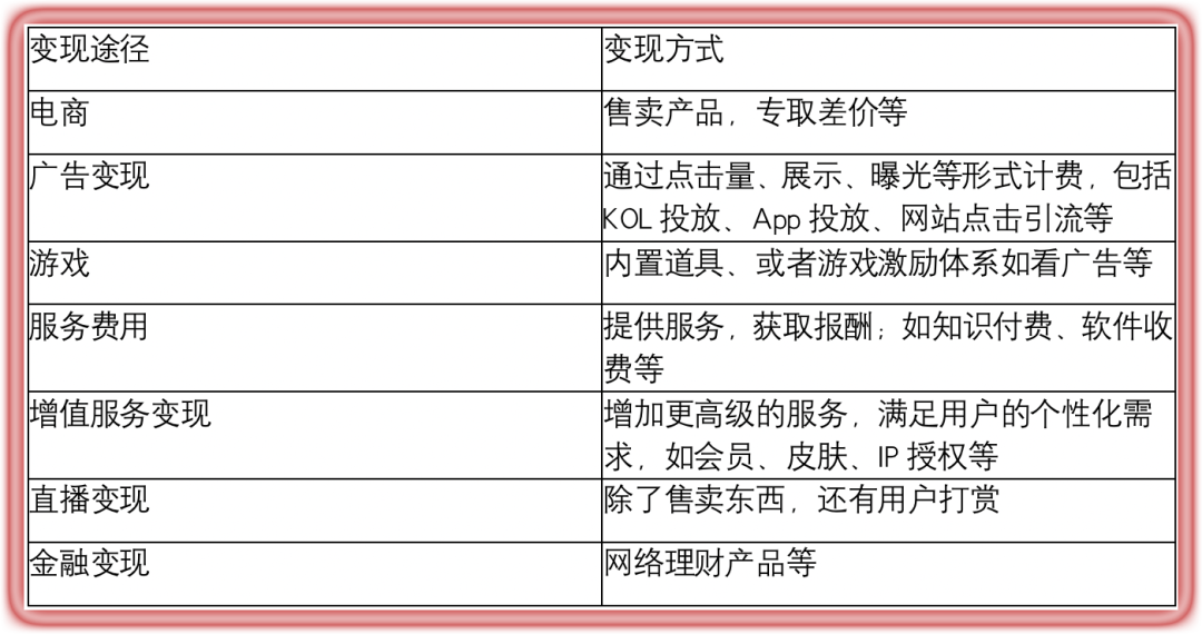 在互聯網大廠工作的朋友,發來一篇文章,像我展示瞭如今互聯網變現的主流的變現方式: