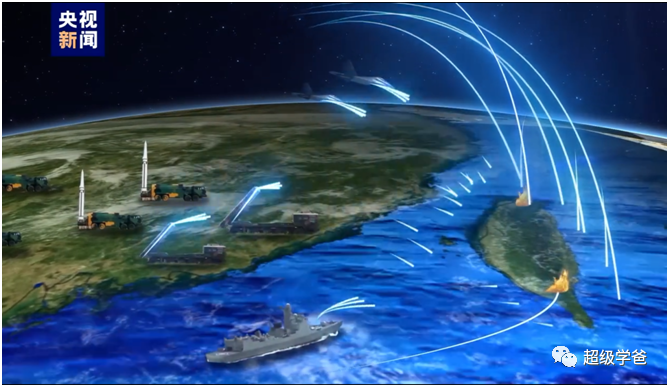 這個演練,基本是真題演練了,就差換上真槍實彈了。實用的武器包括陸基常規導彈、遠程火箭炮、空對地導彈,艦載對地打擊導彈、潛射導彈等等。