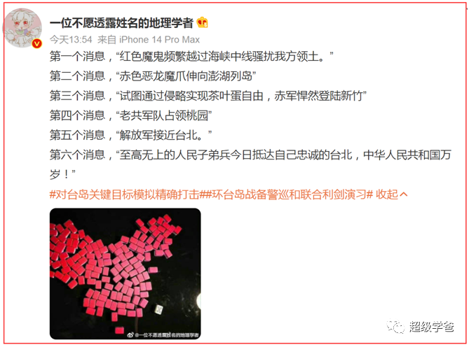 這一波洗地之後,台島的制信息權、制空權和制海權基本基本都沒了,然後武警和城管就可以搞治安、秩序和市容了,再然後就可以組織羣眾辦二代證了。