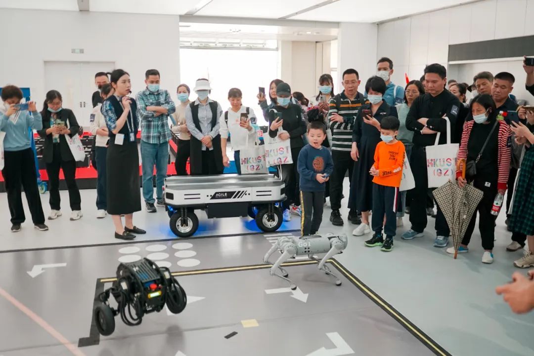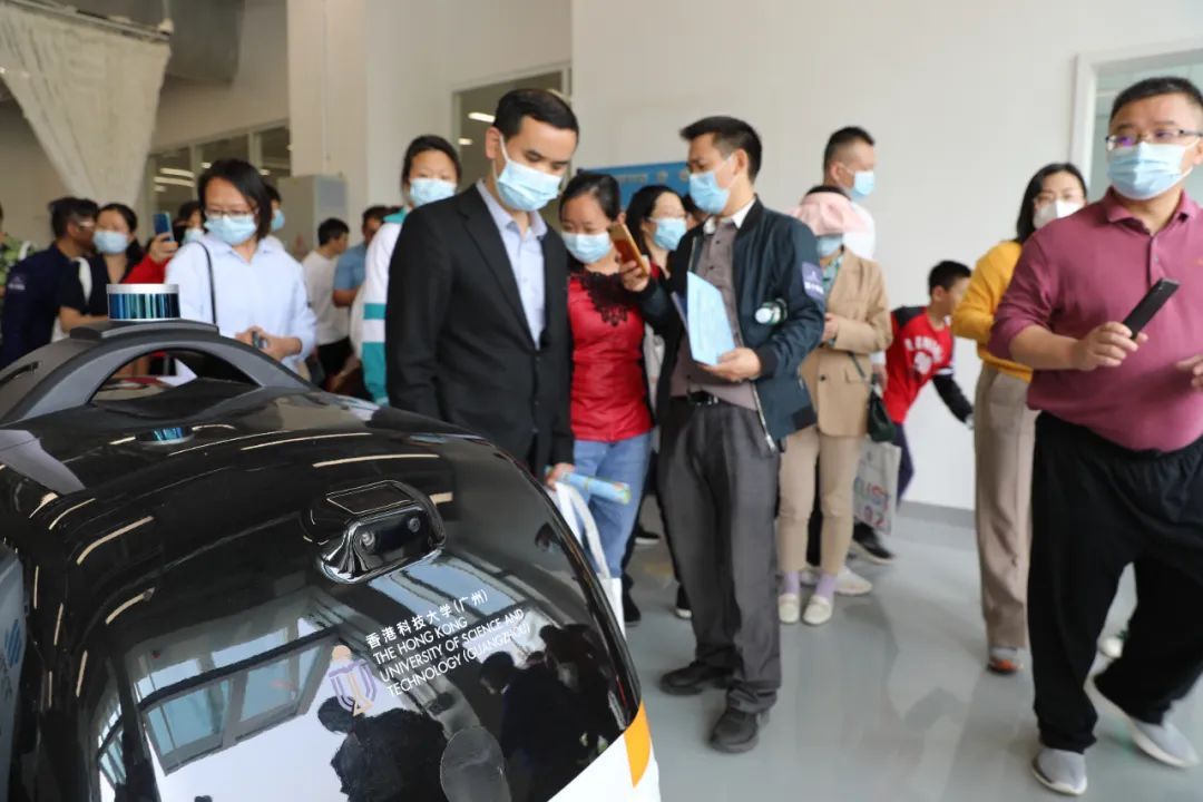 本次接待日設置的展示項目豐富多元,開放了多個實驗室供來賓們進行參觀。在帶隊老師的指引下,家長和學生依次參觀了嗨唄天地(Highbay)、紅鳥學創空間(Maker Space)、元宇宙教室、材料表徵與製備中心(MCPF)、芯片中央實驗室(NICE)、智能自動駕駛技術中心(IADC)、圖書館、體育館及宿舍,沉浸式體驗了港科廣學子的學習、科研、體育活動等多彩的校園生活。其中,元宇宙教室與芯片中央實驗室(NICE)均是首次對家長開放。