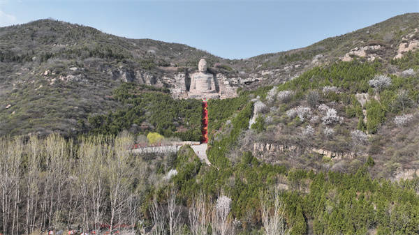 開化寺前寺連理塔所在地幾十畝桃林開花後散發出陣陣清香,使每一個遠瞻大佛者宛如處於隔世的仙境。