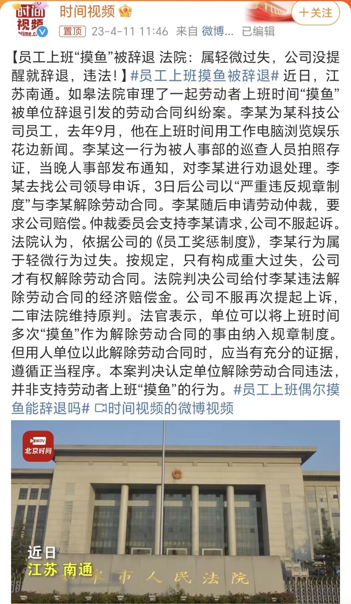 員工上班“摸魚”被辭退?各位覺得哪些行為可以稱得上摸魚?_風聞