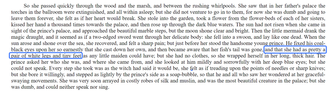 比較常見的描寫中,小美人魚長出了白色的雙腿