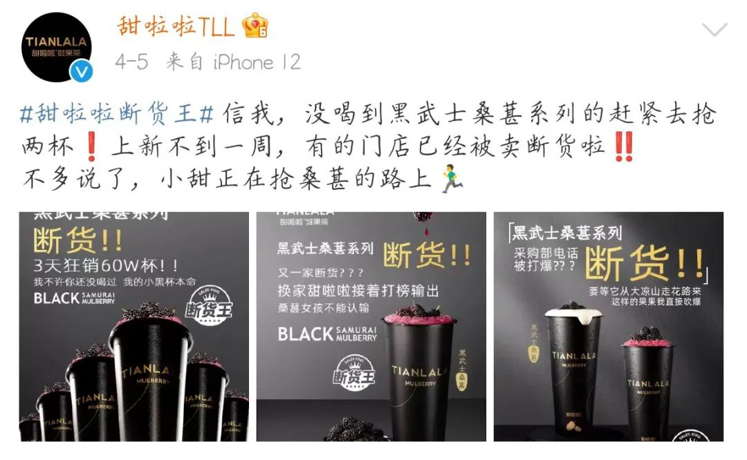 “知道‘黑武士’新品出來就立馬跑去喝,結果跑空一次” “週六去附近美食街打算喝甜啦啦的新品,店員説正在補貨中”…… 在小紅書、微博等社交平台,有不少網友表示甜啦啦新品很難買到,部分甜啦啦門店新品賣斷貨。