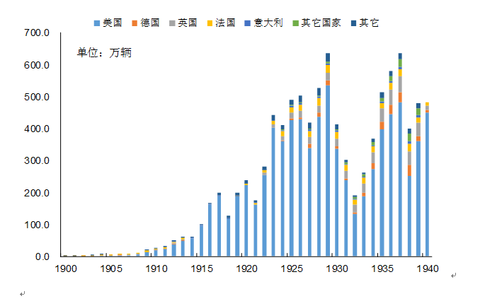世界頭號強國美國1940年的汽車產量就達到了451萬輛。