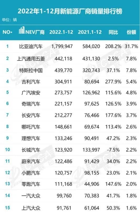 根據乘聯會數據,吉利汽車以30.49萬輛的銷量位居2022年新能源銷量排行榜第四位,前三名依次為比亞迪、上汽通用五菱和特斯拉,新能源汽車銷量依次為180萬輛、44.2萬輛和43.98萬輛。