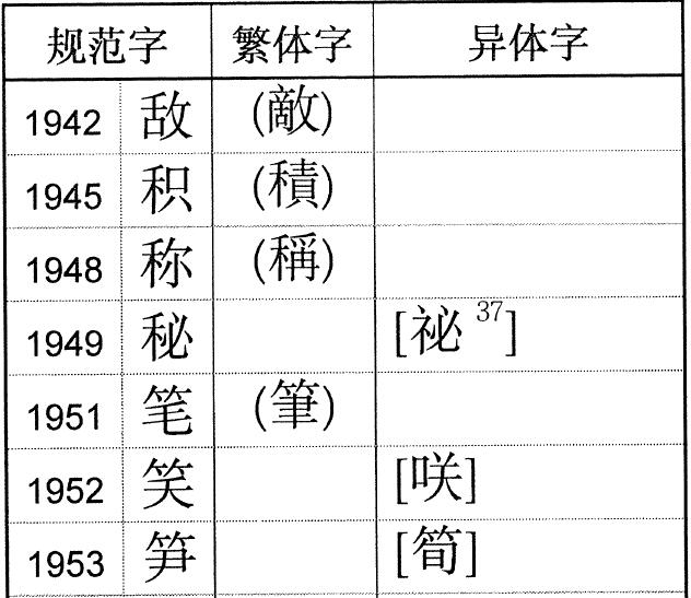 還有一部分,則是異體字,是古時候兩種乃至多種寫法都很常見的,因為古代並沒有嚴格的規範,所以大家通常可以選擇其中一種寫法隨便寫,統計字頻的話,兩種寫法可能四六開,也可能三七開。古人採用的某個字形,今天我們則可能選用了當時它的異體字作為今天的正字。“筍”與“筍”就是異體字的關係,不要搞混了。有《通用規範漢字表》為證: